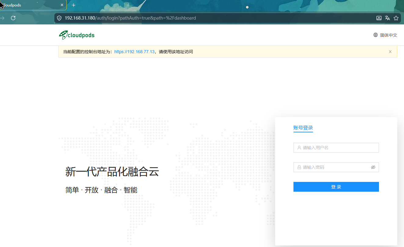 等服务启动完成后,就可以登陆 https://$PUBLIC_IP 访问前端服务,默认登陆用户密码为:admin 和 admin@123。