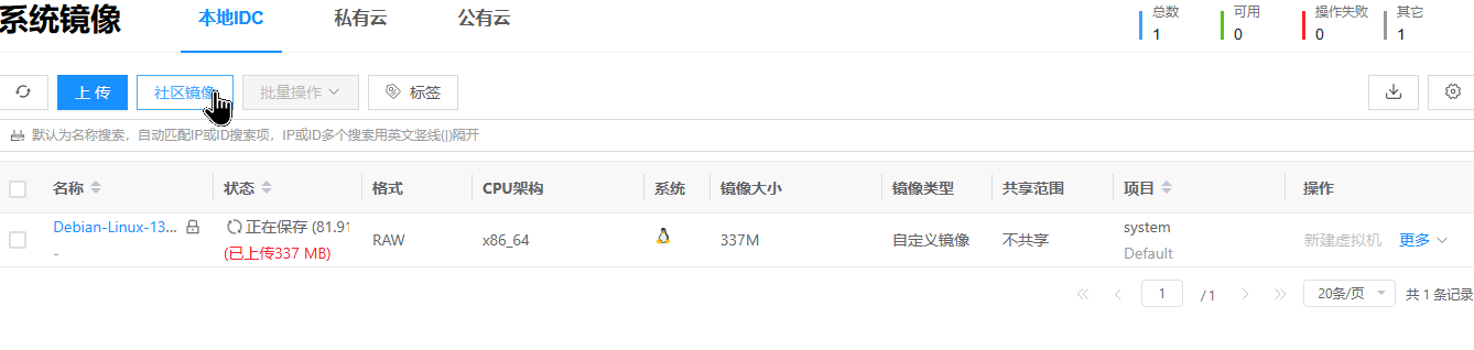 等待镜像状态变成“可用”,就可以将此镜像用于安装操作系统了。