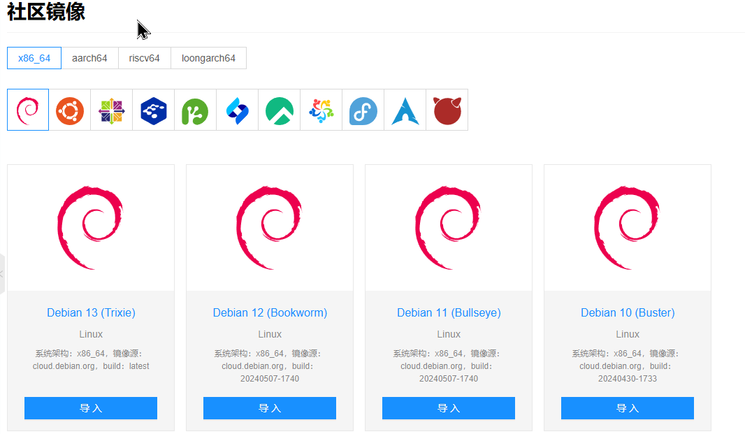 或是点击社区镜像在线导入