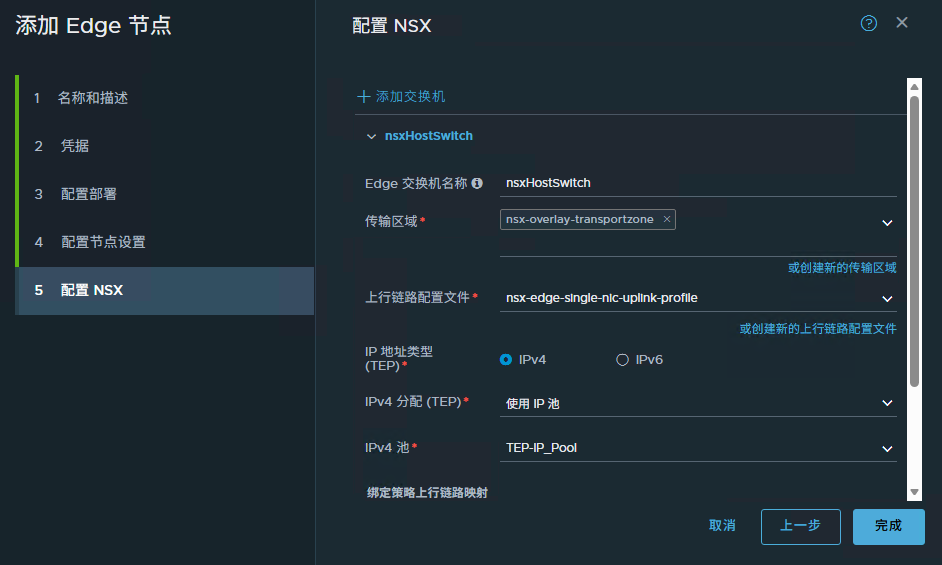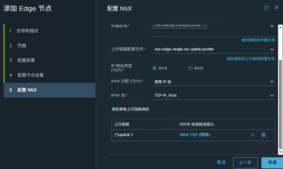 配置管理接口与 TEP 网络,确保与 NSX Manager 通信。